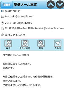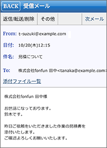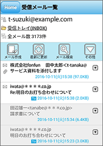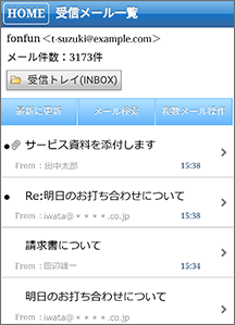 パソコンのメールの受信・返信・メールの作成、送信・転送・削除・検索機能まで充実した機能をガラケー、ガラホ、スマートフォンから簡単にご利用いただけます。