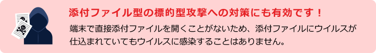 ※添付ファイルウイルスチェック機能はウイルスが含まれるファイルを判定しますが、ウイルスが検出されなかったとしても、 必ずしもウイルスが含まれないことを保証するものではありません。