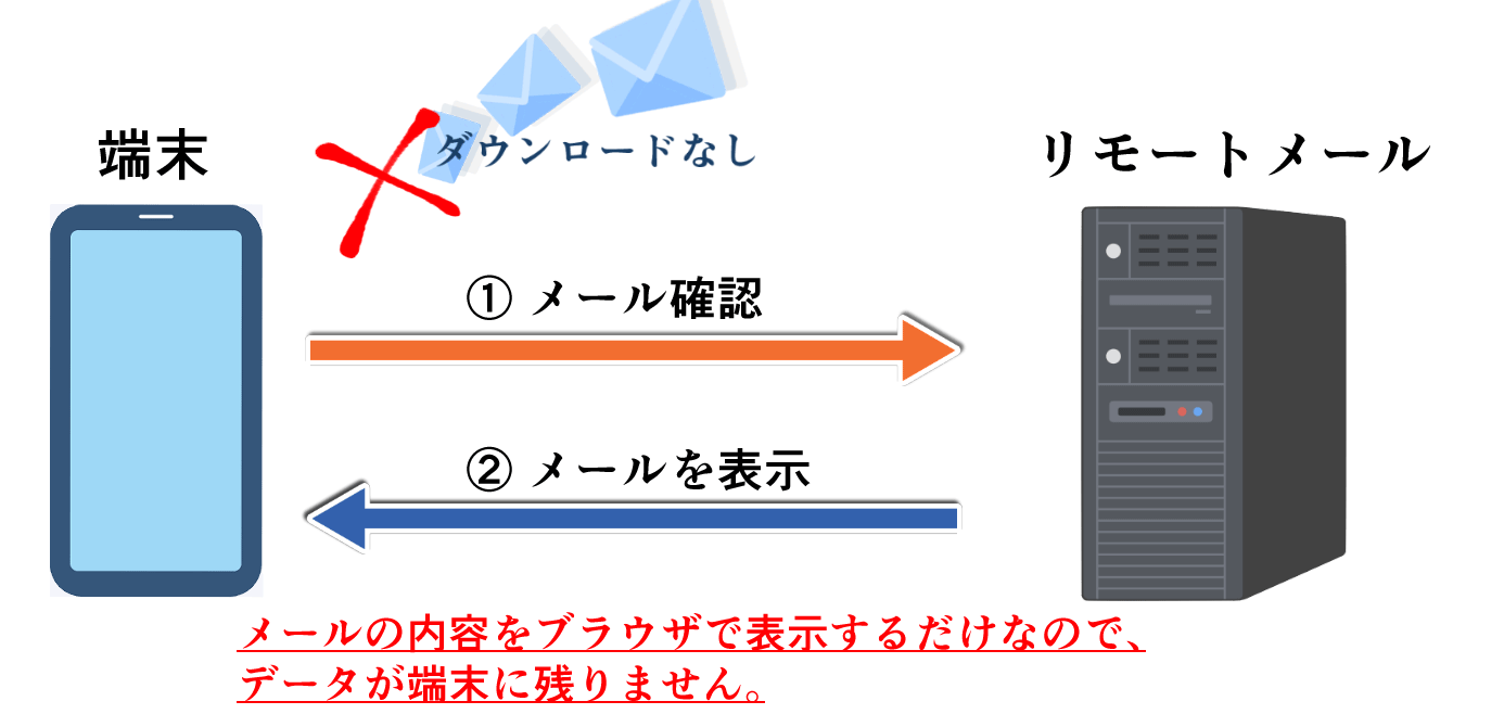 端末にダウンロードしないことにより、ウイルスに感染することはなく、重要な会社のメールが情報漏洩することもありません。