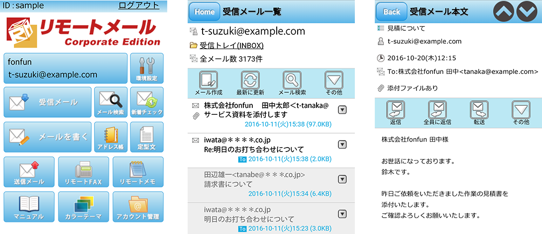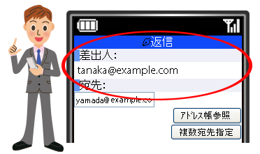モバイル端末からメールを送信しても、会社でメールを送信しているのと同じように、Fromを会社メールアドレスにして送信できます。